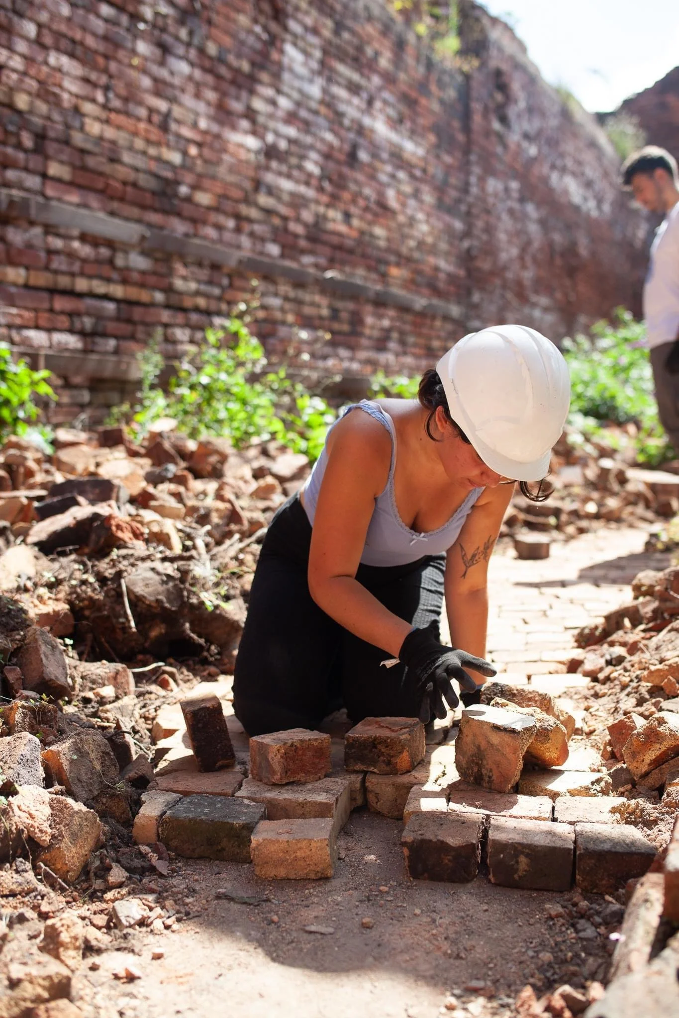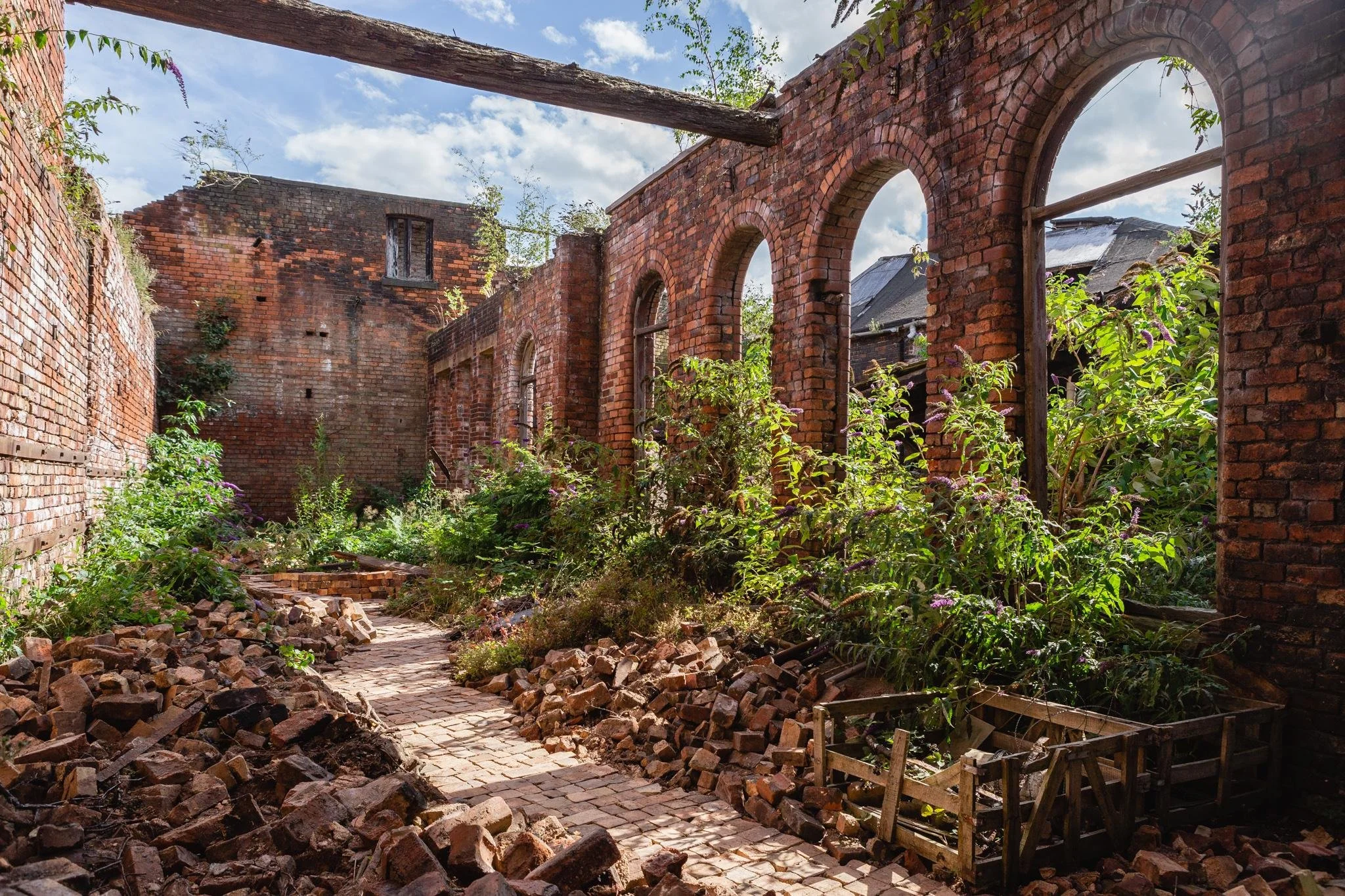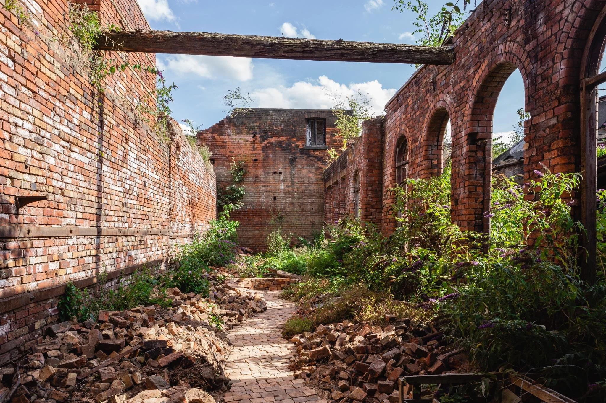 Amidst a wasteland of broken bricks, a small path was cleared. The landscape intervention guides visitors through the material lifetime of Cornish Works, highlighting the beauty of its monumental arches along with the rubble left behind. The path ends at a small viewing platform where one can experience the ruderal plants taking over and wonder, what will come next in the building’s story?